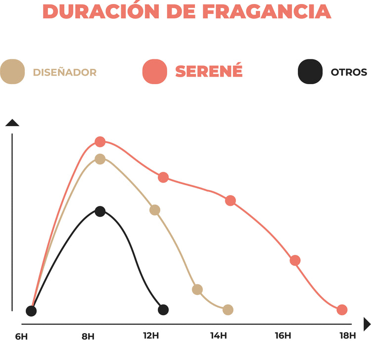 Las hemos diseñado para ser muy duraderas, incluso más que las fragancias de marcas reconocidas. En promedio, tienen una duración de 18 horas, dependiendo de la composición y tus hábitos diarios.
